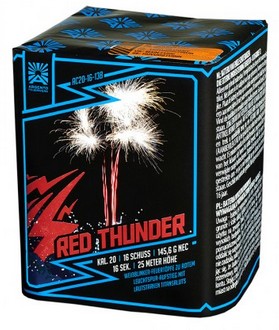 16 Schuss Silberblinker Feuertopf mit roter Leuchtspur als Aufstieg gefolgt von lautstarken Titansaluts.