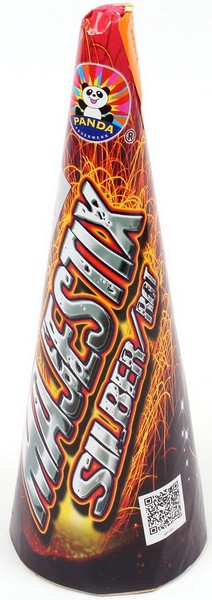 Zuerst eine Silberfontäne mit bunten Sternen, nachfolgend Kometen mit goldenen Schweifaufstieg.