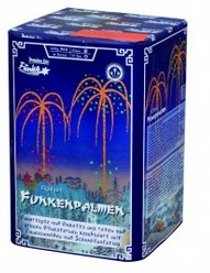 Wunderschöne, gigantische Buketts aus Rotflimmer und blauen Sternen mit einem Zentrum aus Titangoldpalmen, sowie Grünflimmer mit blauen Sternen und Zentrum aus Titangoldpalmen. Alle Effekte mit Goldflimmer-Schweif aufsteigend und lautem Zerlegerknall