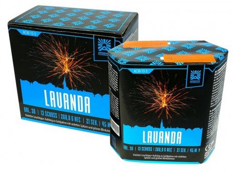 XL Verbundfeuerwerk der Premiumklasse, bestehend aus 13 verschiedenen Batterien mit insgesamt 12 verschiedenen Effektkombinationen in folgender Performance: 1. Feuertöpfe aus silbernen Cracklingblüten werden durchzogen von Kometen in Blau und Purpur die in silberne Knisternadel-Wolken mit blauen und purpurnen Sternen zerlegen. 2. Goldene Palmenschweif-Kometen verwandeln zu Titangoldpalmen mit Sternenzentrum aus Rotblinker oder in Blau. 3.+4. Im V-Fächer erheben sich Goldflimmerkometen die zu Goldflimmerkronen mit rotem Sternenzentrum verwandeln. 5. Rote Schweifkometen verwandeln zu großen Silberflimmerbuketts mit Zentrum aus farbprächtigen Dahlien in Blau, Gelb und Purpur (bunt gemischt). 6.+7. Wieder ein V-Fächer, diesmal aus Goldflimmerkometen mit Verwandlung zu Brokatkronen mit blauen Sternen. 8. Brokatschweifkometen zerlegen zu großen Brokatkronen mit Silberflimmer und werden begleitet von grünem Blütenregen mit blauen Sternen. 9.+10. Ein V-Fächer aus silbernen Cracklingkometen mit Verwandlung zu großen, silbernen Cracklingblüten-Buketts. 11.+12. Ein traumhaftes Bild aus farbintensiven Crossette-Sternen in einer Blau-Rot-Gelb Kombination werden im 2-fachen Zickzack Fächer geschossen. 13. Den Abschluss bildet eine Fächerformation aus Rot-Goldenen Kometen und goldenen Titanweiden in Kombination mit Rot-Blauen Sternenbuketts.