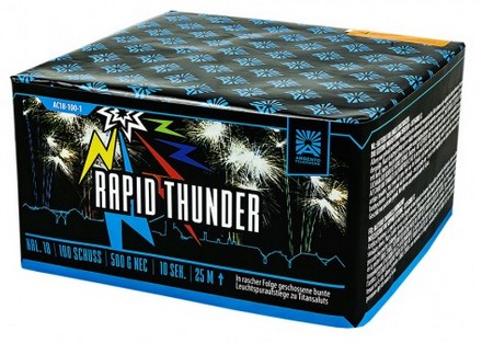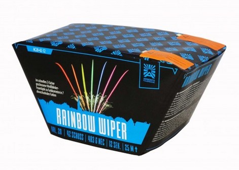 Gefächerte Batterie mit 42 Schuss im Kaliber 25mm. Feuertöpfe in Regenbogen-Farben kombiniert mit leuchtstarken Silberkometen werden im rasanten Tempo in Z-Fächer abgeschossen, mit einer abschließenden Finalsalve auf Schlag.Leise Batterie ohne Zerlegerknall, gut geeignet für Feuerwerke mit geringem Lärmpegel.
